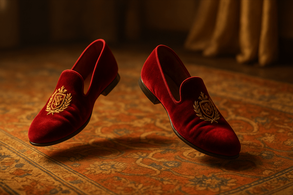 Al centro, su un tappeto persiano un po’ scolorito, un paio di ciabatte in velluto rosso con stemma dorato eseguivano un valzer impeccabile.
